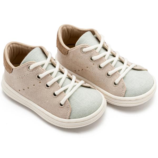 Δίχρωμα Δετά Σνίκερ από Ύφασμα και Δέρμα σε Μπεζ Μέντα Χρώμα.