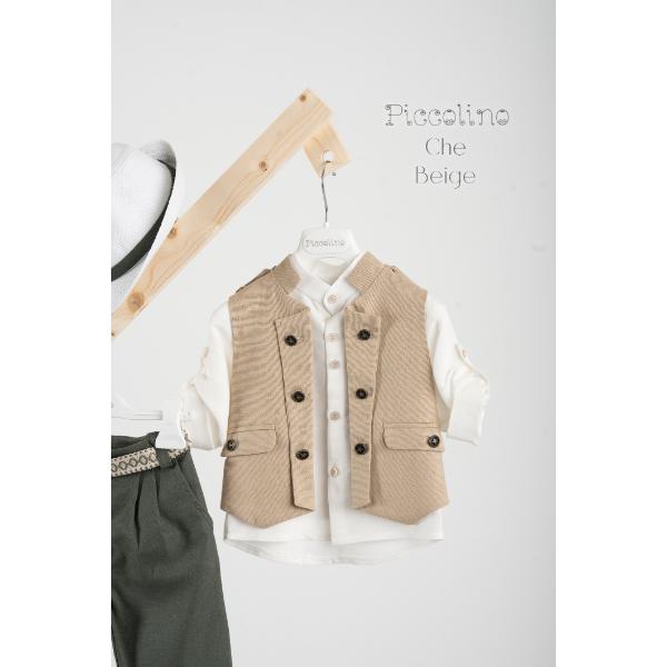 Piccolino βαπτιστικό κοστούμι με γιλέκο για αγόρι BFA24S12.BEIGE CHE Beige