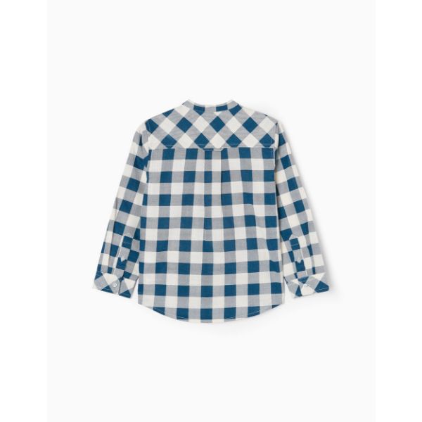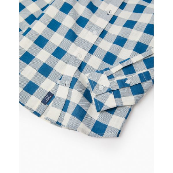 Μακρυμάνικο πουκάμισο για αγόρι, 100% βαμβακερό, με καρό σχέδιο σε αποχρώσεις του μπλε
