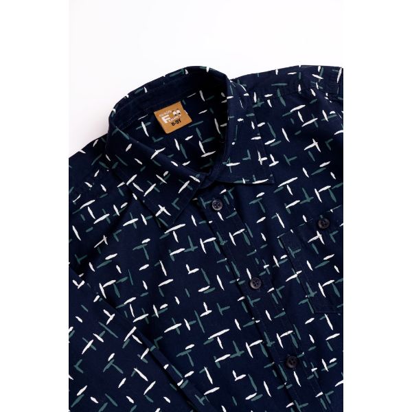 Πουκάμισο μακρυμάνικο για αγόρι από 6 έως 16 ετών, σε μπλε χρώμα με ολόσωμο τύπωμα.
