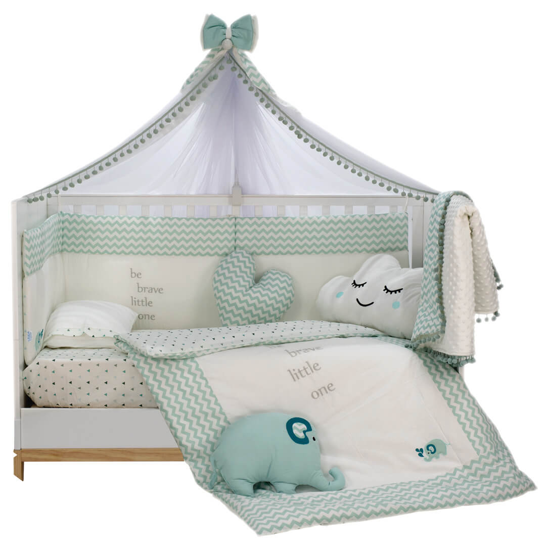 ΠΡΟΙΚΑ 9ΤΜΧ.ELEPHANT Προίκα μωρού με κέντημα 9 τεμαχίων, περιλαμβάνει: – Πάντα – Κουνουπιέρα – Πάπλωμα – Παπλωματοθήκη – Βάση κουνουπιέρας – Κατωσέντονο – Μαξιλάρι – Μαξιλαροθήκη – Διακοσμητικό μαξιλάρι