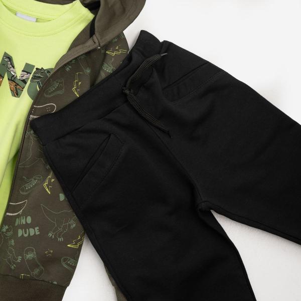 Σετ 3 τμχ φόρμες αχνούδιαστες με ζακέτα για αγόρι χακί-lime-μαύρο Funky 125-395100-1