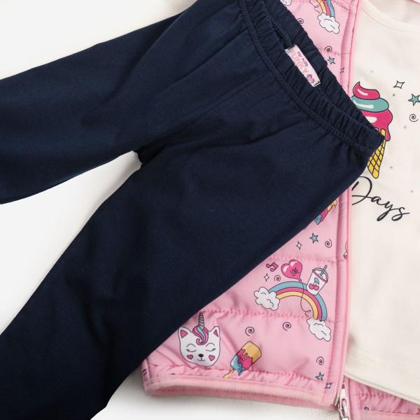 Σετ 3τμχ αμάνικο μπουφάν-μπλούζα-κολάν για κορίτσι ροζ-εκρού-μπλε FUNKY 125-795101-1