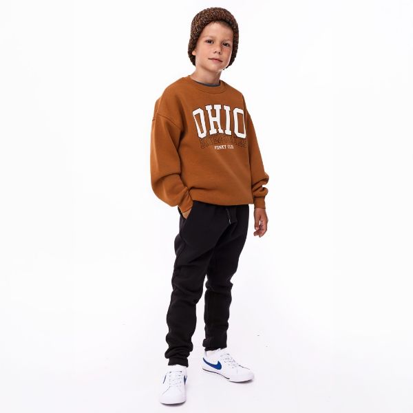 Σετ φόρμα φούτερ για αγόρι από 6 ως 16 ετών, σε χρώμα κανελί-μαύρο με τύπωμα στη μπλούζα
