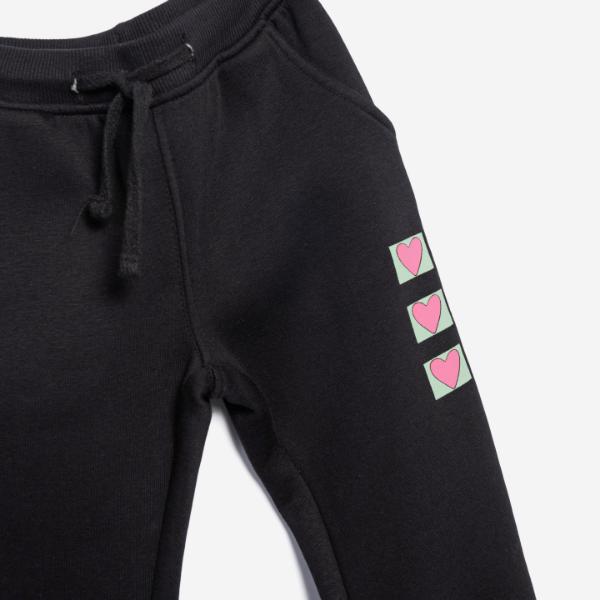 Σετ φόρμες για κορίτσι, φούτερ μπλούζα σε φιστικί χρώμα, με τύπωμα, παντελόνι σε μαύρο χρώμα, με τύπωμα, λάστιχο και κορδόνι στη μέση.