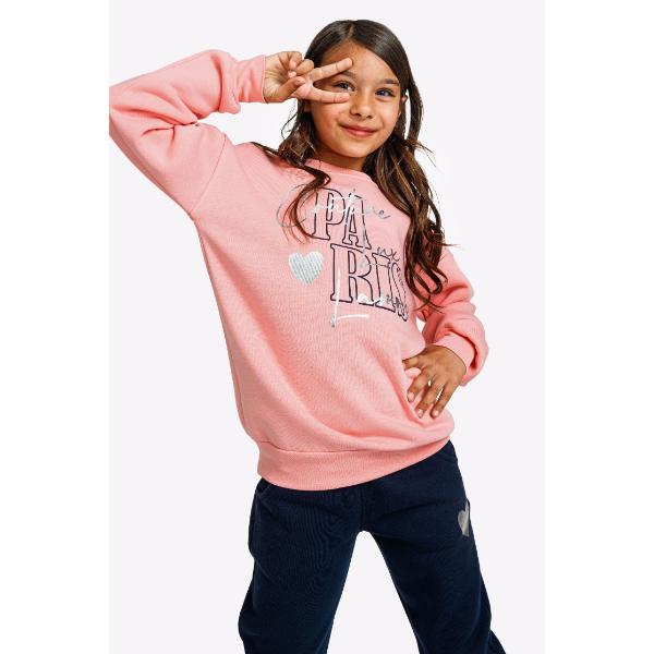 Σετ φόρμες φούτερ για κορίτσι από 6 ως 16 ετών. Μπλούζα σε ροζ χρώμα με τύπωμα μπροστά. Παντελόνι φόρμας σε μπλε χρώμα.