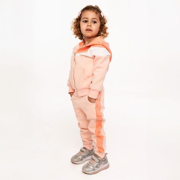 Σετ φόρμες φούτερ με ζακέτα για κορίτσι σε χρώμα σομόν 224-717119-1