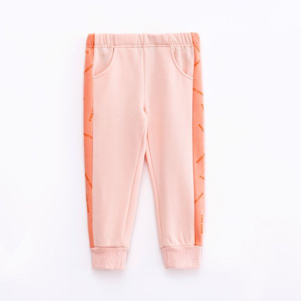 Φόρμα φούτερ για κορίτσι από 1 έως 6 ετών. Ζακέτα σε σομόν χρώμα με κουκούλα και τσέπες. Παντελόνι σε σομόν χρώμα, γραμμή στο πλάι με πιο έντονο χρώμα, λάστιχο στη μέση.