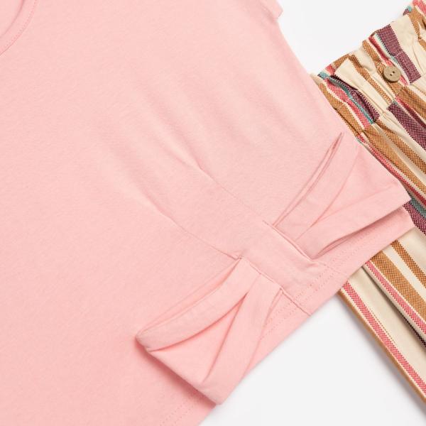 Σετ καλοκαιρινή παντελόνα για κορίτσι σε χρώμα ροζ-εκρού ριγέ FUNKY 125-523101-1
