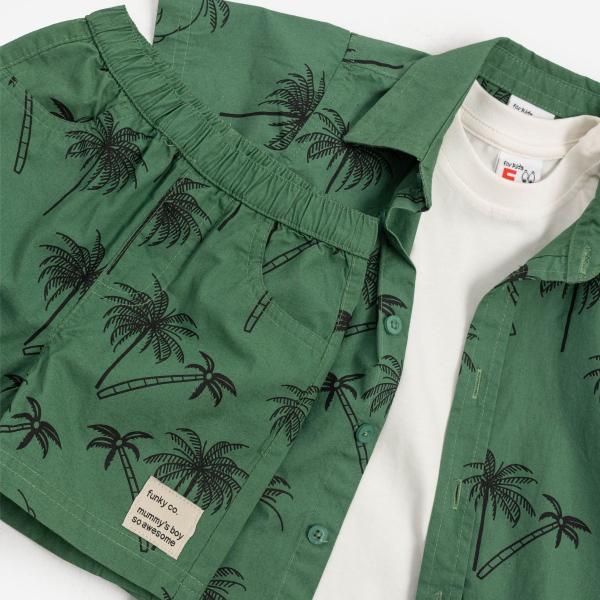 Σετ καλοκαιρινό 3τμχ πουκάμισο-μπλούζα-βερμούδα για αγόρι σε χρώμα πράσινο-λευκό FUNKY 125-395110-1