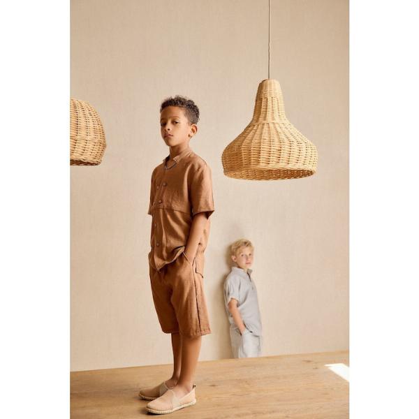 Σετ καλοκαιρινό, πουκάμισο με βερμούδα σε καφέ χρώμα ,της εταιρείας Gang. Ένα σετ πολύ αέρινο, άνετο και δροσερό που θα κάνει το παιδί να ξεχωρίζει σε κάθε του εμφάνιση.