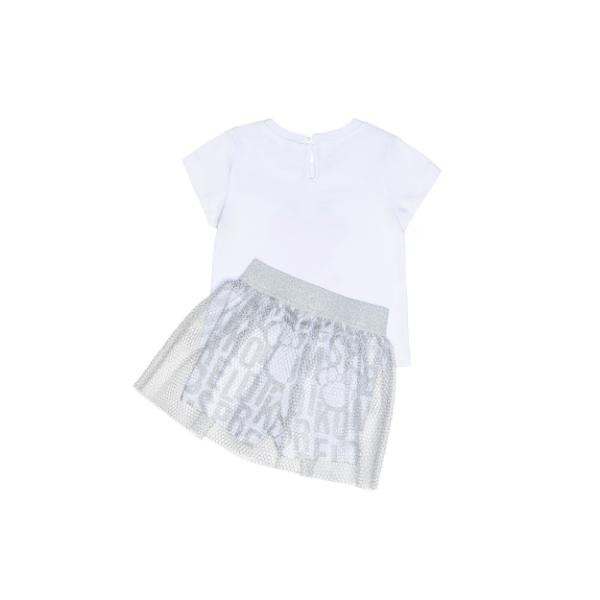 Σετ καλοκαιρινό με σορτσόφουστα για κορίτσι σε χρώμα λευκό-γκρι SPRINT 251-2012-100