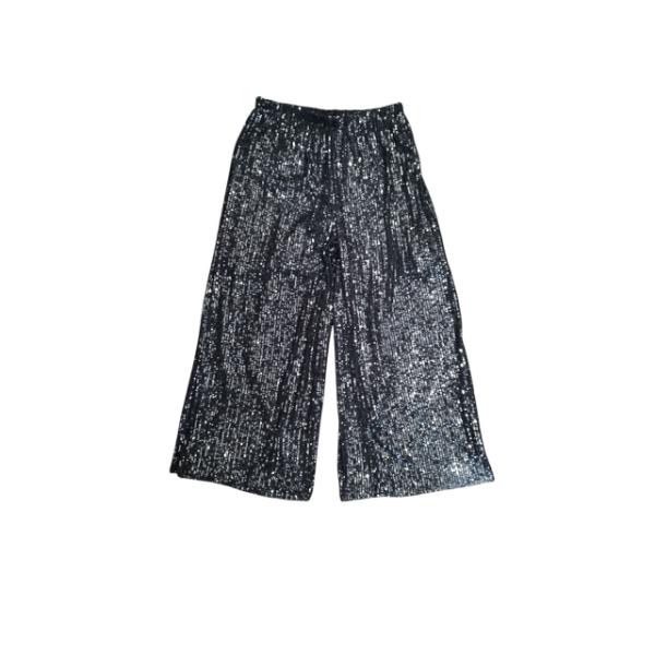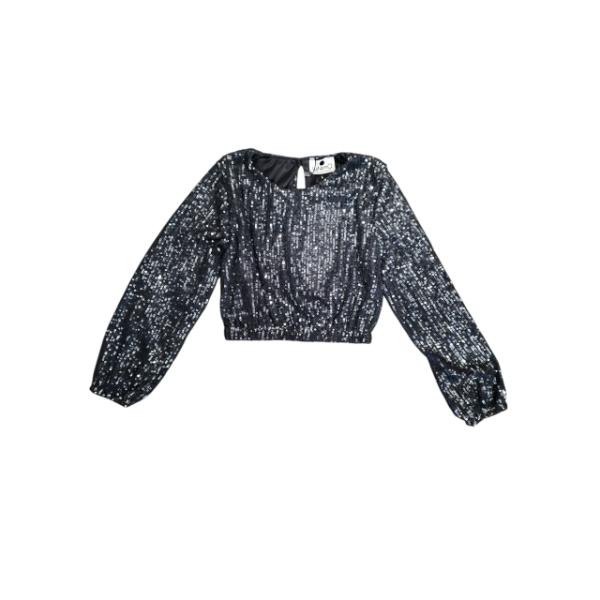 Crop top μπλουζάκι και παντελόνα με λάστιχο στη μέση, σε ανθρακί χρώμα, με παγιέτα.