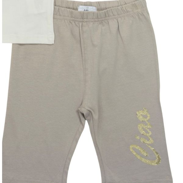 Σετ μπλούζα- ποδηλατικό κολάν για κορίτσι σε χρώμα εκρού-ανοιχτή μόκα FUNKY 123-525100-3