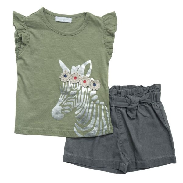 Σετ σορτς για κορίτσι σε χρώμα χακί-γκρι FUNKY 123-724117-2