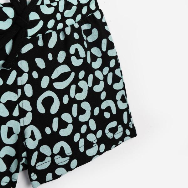 Σετ σορτς μακό για κορίτσι από 1 έως 6 ετών. Μπλούζα αμάνικη σε χρώμα βεραμαν και σορτς σε χρώμα μαύρο με animal τύπωμα