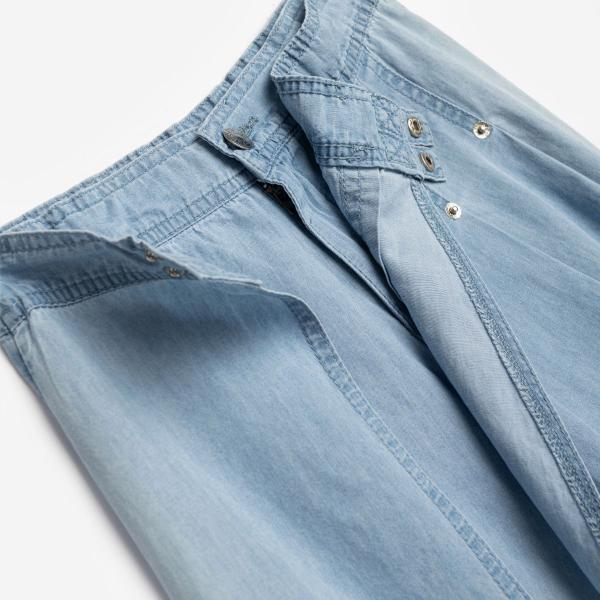 Σετ σορτς τζιν (σορτσόφουστα) για κορίτσι από 6 έως 16 ετών, μπλούζα με βολάν τιράντα σε χρώμα λευκό με λουλουδάκια και σορτς τζιν, σε χρώμα μπλε ανοιχτό, με εσωτερικό ρυθμιζόμενο λάστιχο.