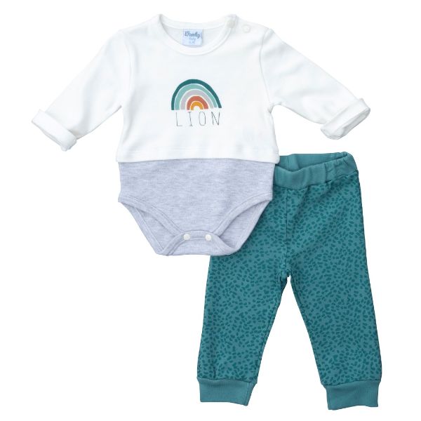 Σετ βρεφικό κορμάκι για αγόρι σε χρώμα εκρού-moss Funky 223-050106-1