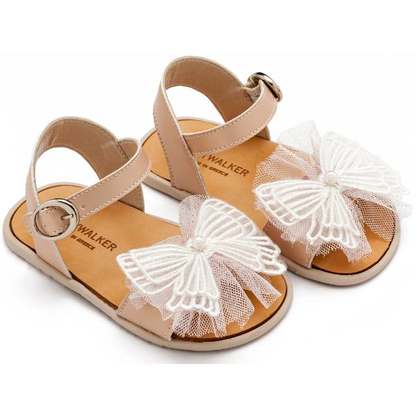 Πέδιλο με χειροποίητο διακοσμητικό πεταλούδα, σε nude χρώμα.