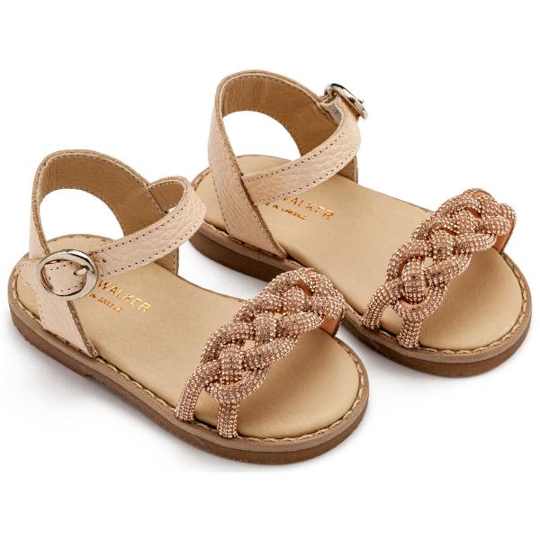 Δερμάτινο σανδάλι από δέρμα περλέ σταμπωτό, με διακοσμητική πλεξούδα από στρας, σε nude χρώμα.