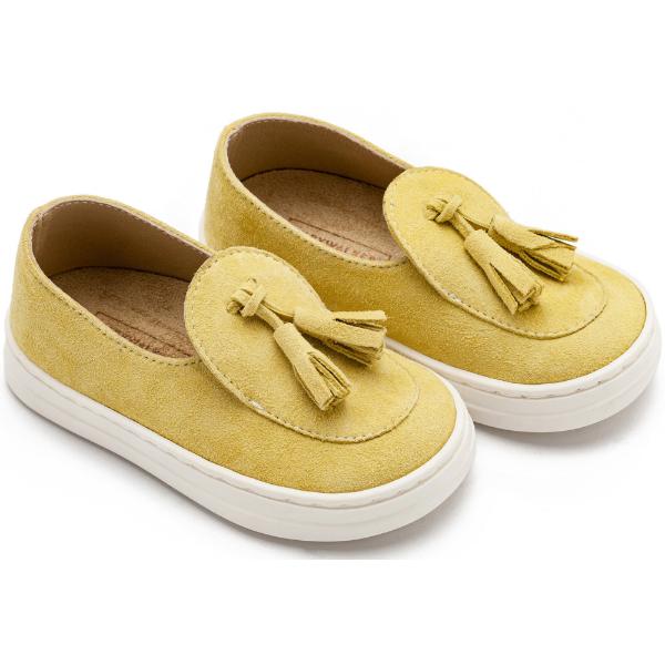 Μονόχρωμο Καστόρινο Loafer με Φουντάκια σε Κίτρινο Λάιμ Χρώμα.