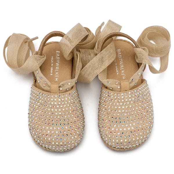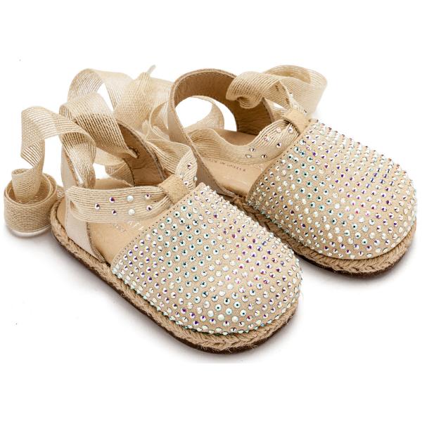 Δερμάτινη Εσπαντρίγια Καλυμμένη με Swarovski και Δέσιμο από Κορδόνι Γάζα με Στρας σε Εκρού Χρώμα.