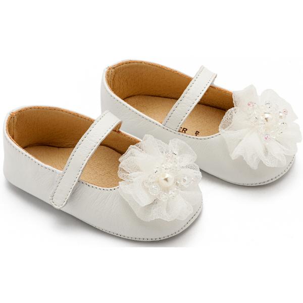 Βαπτιστικές Δερμάτινες Μπαλαρίνες Αγκαλιάς BABYWALKER Λευκό MI1651