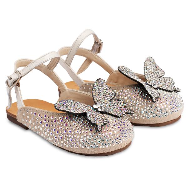 Δερμάτινο Σαμπό Διακοσμημένο Ολόγυρα με Στρας και Πεταλούδα σε Εκρού Χρώμα.