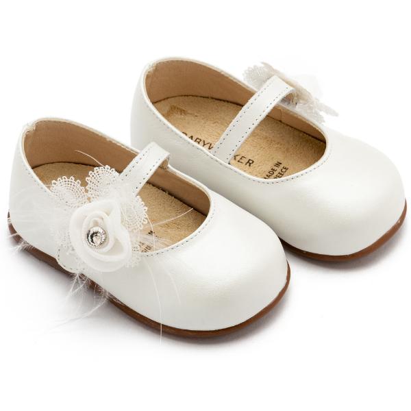 Βαπτιστικές Δερμάτινες Μπαλαρίνες BABYWALKER Εκρού PRI2640