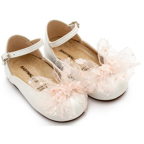 Βαπτιστικές Δερμάτινες Μπαλαρίνες BABYWALKER Εκρού-Ροζ BW4853