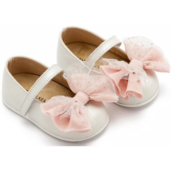 Βαπτιστικές Δερμάτινες Μπαλαρίνες BABYWALKER Εκρού-Ροζ PRI2638