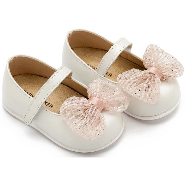 Βαπτιστικές Δερμάτινες Μπαλαρίνες BABYWALKER Εκρού-Ροζ PRI2639