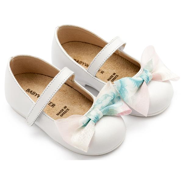 Βαπτιστικές Δερμάτινες Μπαλαρίνες BABYWALKER Λευκό-Φλοράλ BW4865