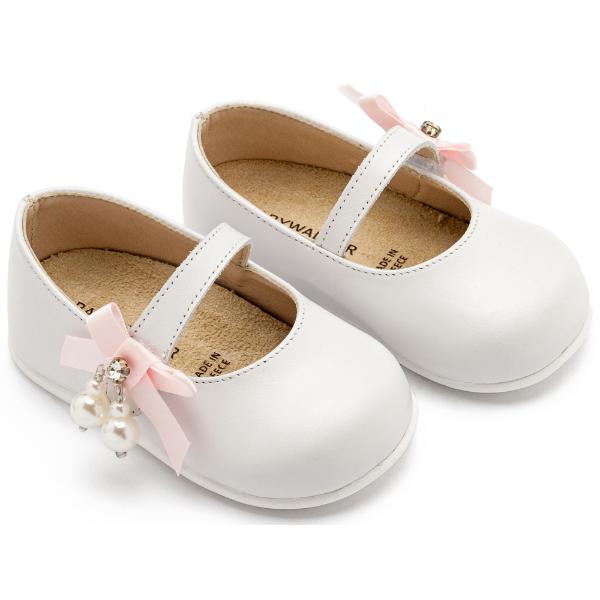 Βαπτιστικές Δερμάτινες Μπαλαρίνες BABYWALKER Λευκό-Ροζ PRI2646