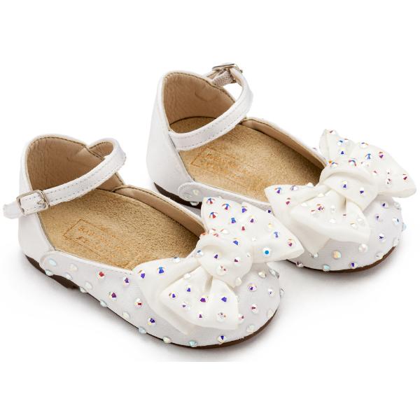 Γαλλικό γοβάκι από satin ύφασμα με φιόγκο οργάντζας και στρας Swarovski σε λευκό χρώμα.