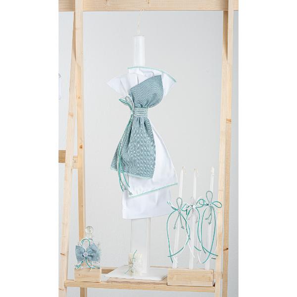 Βαπτιστικό πακέτο Piccolino Francisco mint white. Περιλαμβάνει κοστούμι, σετ λαδόπανα, λαμπάδα, λαδοσέτ και στολισμένη τσάντα καπιτονέ.