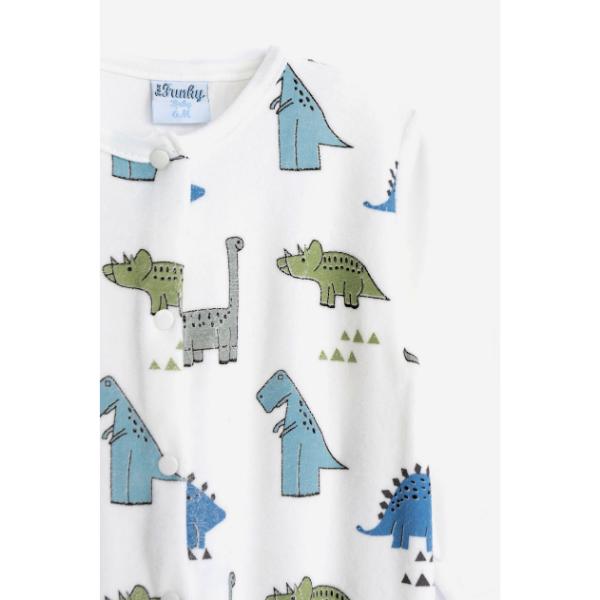 Βρεφικό φορμάκι βελουτέ, για αγόρι σε χρώμα εκρού και τύπωμα με δεινοσαυράκια μπροστά.