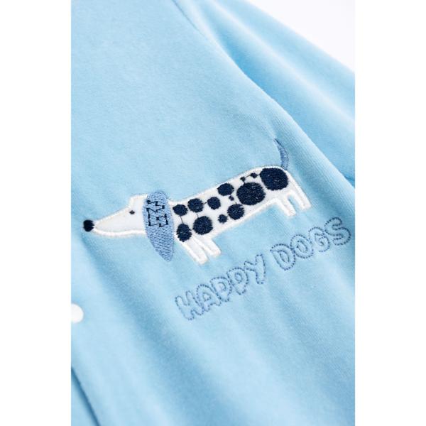 Βρεφικό φορμάκι βελουτέ, μακρυμάνικο, για αγόρι σε γαλάζιο χρώμα. Τύπωμα με σκυλάκι .
