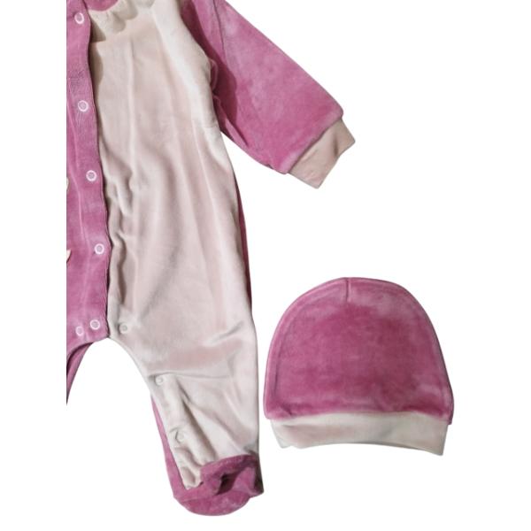 Βρεφικό φορμάκι βελουτέ για κορίτσι ροζ Kinder 10021