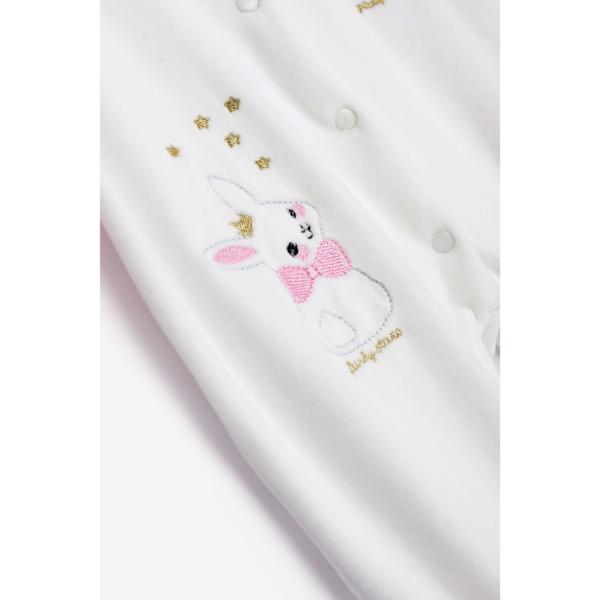 Φορμάκι βελουτέ, μακρυμάνικο για κορίτσι βρεφανάπτυξη σε χρώμα εκρού-ροζ με σχέδιο λαγουδάκια.