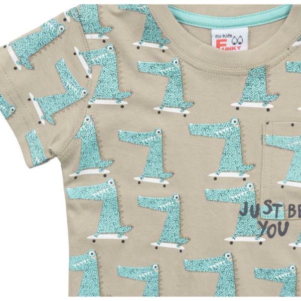 Μπλούζα κοντομάνικη για αγόρι μηνών σε χρώμα μπεζ με τύπωμα κροκόδειλο