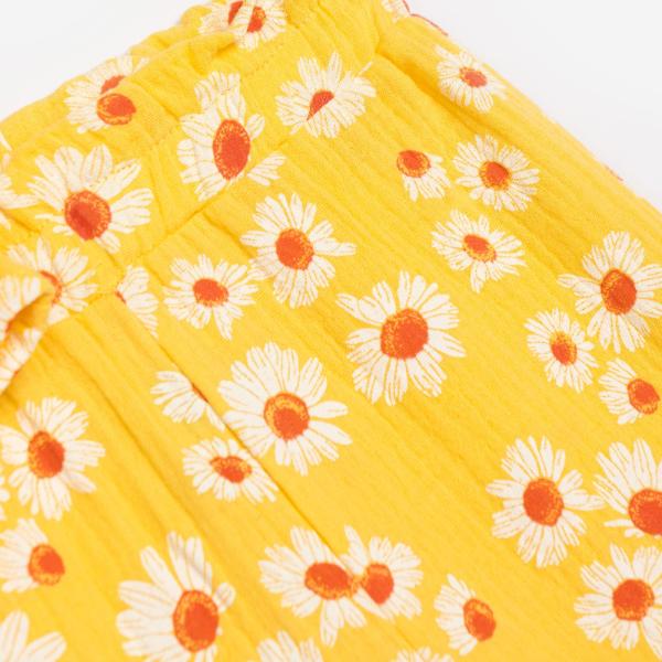 Σετ καλοκαιρινό για κορίτσι από 6 έως 24 μηνών, μπλουζάκι τιραντέ με παντελόνα σε κίτρινο χρώμα με μαργαρίτες.