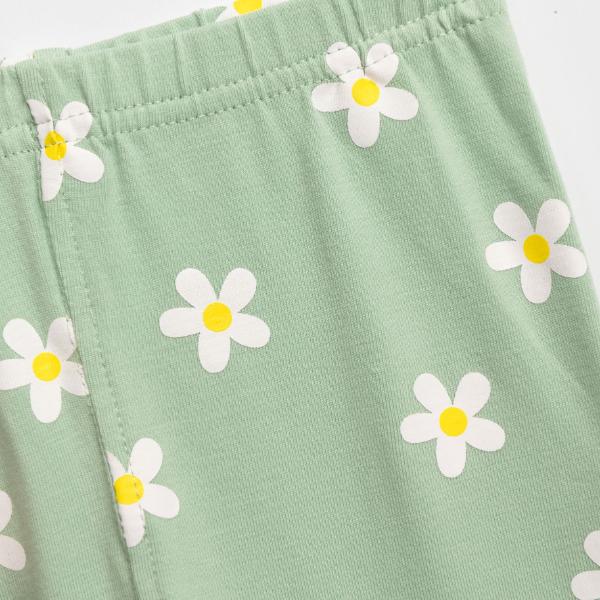 Σετ καλοκαιρινό για κορίτσι από 6 έως 24 μηνών. Μπλούζα μακό κοντομάνικη, με τύπωμα μονόκερο, κολάν κάπρι σε φιστικί χρώμα με τύπωμα λουλουδάκια.